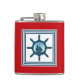 Diseño de temática náutica con decoración de escenas de vela en cuadrados rayados sobre fondo rojo