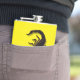 Un Escorpión Negro y su sombra contra un fondo amarillo con Stinger a la lista del artista Jason Girard.