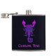 Icono de escorpión. Icono morado inspirado en el diseño de nudos celtas. Color de fondo personalizado. texto personalizado.