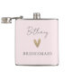 ¿Buscando el regalo perfecto para la dama de honor para mostrar su aprecio por sus mejores chicas? ¡No hay más que mirar nuestro moderno matraz dorado! Con un elegante tipo de letra que explica "Bridesmaid" y el nombre de tu amigo en escritura moderna con un fondo rosa rubor, este matraz es la manera ideal de agradecer a tus damas de honor por estar a tu lado en tu día especial. Ya sea que esté planeando una despedida de soltera o simplemente quiera dar un regalo reflexivo y personalizado, nuestros frascos son la elección perfecta.