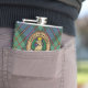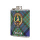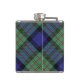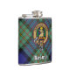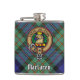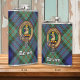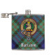 Insignia escudo Clan MacLaren rodeada por una correa y hebilla sobre fondo tartán. Texto personalizado.