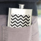 Hip y moderno Chevron Classic Flask. Este frágil matraz presenta un patrón de zag de chevron zig en blanco y negro. Añadir texto a este diseño para darle un toque personal.