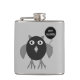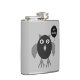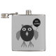 Este impresionante matraz presenta un lechón espeluznante con grandes ojos de miedo y garras afiladas. Su cuerpo es negro y sus alas, orejas, garras y pico son grises. El búho sostiene un globo con "Halloween feliz" escrito en él y está listo para el fiesta.