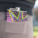 Un agua polvorienta y un fondo negro y rosa moteado son el escenario ideal para una estrella de fucsia, aqua y amarillo. El monograma puede ser personalizado para satisfacer sus necesidades.