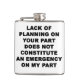 Por el amante del sarcasmo en todos nosotros. Echa un vistazo a este ingenioso diseño de "La falta de planificación por tu parte no constituye una emergencia por mi parte" sobre ropa, tazas, mousepads, botones y otros regalos únicos.