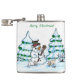 Petaca ¡Feliz Navidad! Hombre de nieve con gato y cachorr