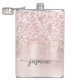 Frasco personalizado con nombre de monograma en estilo guion con brillo rosa dorado metálico Glam femenino. Estos diseños presentan su primer nombre en una hermosa tipografía de letra manuscrita con cola de florituras en hoja de aluminio metálica rosa dorada con borde de brillo glamuroso. Estos son fáciles de personalizar. Gran regalo femenino con estilo para fiesta de despedida, regalo de inauguración de casa, también para fiesta de despedida, cumpleaños, día de la madre, boda, fiesta de cumpleaños de dulces 16, fiesta de despedida de soltera, para fiesta de graduación y es para la chica que ama cosas únicas y elegantes con brillo.