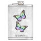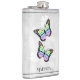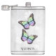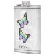 Disfruta de tus bebidas alcohólicas favoritas en cualquier momento con un matraz de mariposa arcoiris con vinílico floral envuelto. El diseño del matraz presenta un par de mariposas vibrantes que descansan sobre una vina floral blanca sobre un fondo gris claro. También hay artículos de regalo adicionales disponibles con este diseño.