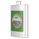 Flask with the flag of Chattanooga, Tennessee. A green and blue flag with the seal of the city in the center
