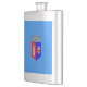 Flask with design with design with flag of Tirana, capital city of Albania, blue flag with coat of arms