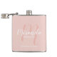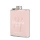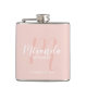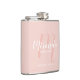 Añada un toque personal a su boda con el matraz personalizado de la dama de honor. Este matraz presenta el nombre personalizado de la dama de honor en un estilo de letra de escritura moderno y blanco y un monograma en un estilo de fuente de escritura moderno rosa y de color rosa como fondo con el título y la fecha boda en sans modernos blancos serif estilo de fuente sobre fondo rosa de color negro. También perfecto para la criada de honor, madre de la novia y más.