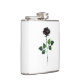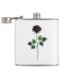 Rosa negro simbólico, dibujado de forma artística, con tallos verdes y hojas sobre fondo blanco. Rosa negro.