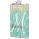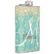 Petaca Floral de oro monograma sobre verde Verde azulado