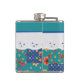 Un matraz de cadera de moda para personalizar, con un toque nostálgico y un trazo retro Faux Patchowrk sobre un fondo Verde azulado, adornado con efecto de encaje blanco. Este diseño, que forma parte de la colección "Granny Print" de Posh & Painterly, se puede ajustar fácilmente a cualquier máscara.