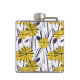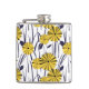 Ilustracion de estilo retro sin igual con flores amarillas y hojas azules sobre fondo blanco