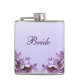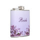 Las animadas animaciones son el tema de este elegante matraz de Novia con un borde de pulverizadores de lila rosa y malva sobre un fondo morado pálido degradado. El texto puede ser personalizado para su ocasión especial.