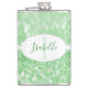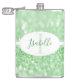Disfruta de tu bebida alcohólica favorita mientras estás de viaje con un matraz personalizado de Purpurina verde. El diseño de la máscara presenta un fondo verde purpurina y un banner ovalado donde puede añadir su nombre y su monograma para la personalización. También hay artículos de regalo adicionales disponibles con este diseño. Póngase en contacto conmigo directamente si necesita ayuda para personalizar este elemento. El purpurina se presenta artísticamente y el producto final no contiene purpurina real.