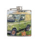 El vinilo cubrió el frasco de la cadera con el diseño de Land Rover del viejo estilo de una pintura original por "GRANJA" de GJLC pintada en la memoria cariñosa pintura de la granja de la patata a la inglesa 1909-1989 de Eric Juan Dorling (ganadero/granjero) la "con Sandy Sam el border collie. Navidad precioso o regalo de cumpleaños para el Grandad.
