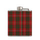 Frasco hermoso con el modelo rojo y verde clásico de la tela escocesa de tartán de Bruce del clan. Personalice el monograma de tres letras, en la placa de mirada metalizado, para adaptarse a sus necesidades. Gran idea para un regalo para cualquier individuo y especialmente grande como regalo del banquete de boda para los padrinos de boda.