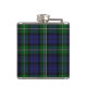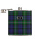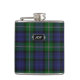 Frasco hermoso con el modelo azul y verde tradicional de la tela escocesa de tartán de Forbes del clan. Personalice el monograma de tres letras, en la placa de mirada metalizado, para adaptarse a sus necesidades. Gran idea para un regalo para cualquier individuo y especialmente grande como regalo del banquete de boda para los padrinos de boda.