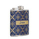 Estás listo para cualquier ocasión con esta elegante petaca de licor azul y dorado inspirada en Marruecos. Con una placa de nombre con purpurina dorada que puedes personalizar completamente, este es un gran regalo para cumpleaños, día de la madre o graduaciones (solo adultos), ¡todos podemos brindar por eso! Este también es un regalo elegante para dar a la novia, las damas de honor o para impresionar a la madre de la novia. Todo el trabajo de purpurina es solo obra de arte. POR FAVOR TENGA EN CUENTA: Estas son gráficas planas impresas, sin lentejuelas, joyas o partes elevadas reales. ¡Encontrarás este arte impresionante!