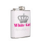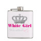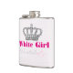 Blanco gris y frasco temático rosado. Escriben el "chica blanco perdido" en frente en fuentes bonitas. El frasco se embellece con una corona y tres pequeños corazones rosados,