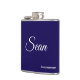 Un frasco personalizado con nombre y título es un gran regalo para tu boda, para tu compromiso o para la despedida de soltero. El color es azul marino y el texto se puede reemplazar con tu propio nombre y título.