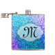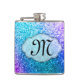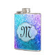 Frasco azul del whisky de la inicial del monograma del encanto del Glitz de la aguamarina verde azulada púrpura rosada femenina del purpurina de Bling personalizado