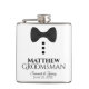 Estos frascos de licor divertidos están diseñados especialmente para los padrinos. Presentan un divertido diseño de corbata negra con tres botones en un fondo blanco, que evoca la idea de un esmoquin. El texto dice "Groomsman" y tiene un espacio para su nombre, así como la pareja boda y la fecha. Perfecto favor o regalo, y una gran manera de agradecerle por estar en tu fiesta de bodas.
