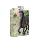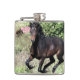 Galopando el caballo de castañas en la pradera. frontiernow.com