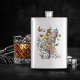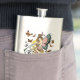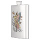 Un hada rubia de Steampunk con alas rosa y azul. El hada lleva un atuendo lindo con sombrero de punta, medias corsé y rayadas, mariposas, reloj, engranajes y diseño tribal todo en un fondo amarillo claro