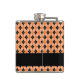 Este matraz tiene un gatito negro, en una calabaza. Fantástico para otoño o Halloween. El diseño de fondo es un estilo de argyle negro, naranja y blanco. La banda negra gruesa tiene texto que se puede personalizar.