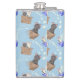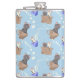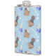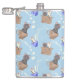 Gatos en tazas y cajas y gotas de leche en el fondo azul