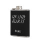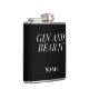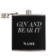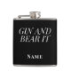 This stylish hip flask features the playful phrase “Gin and Bear It” in a clean, modern typography layout, finished with a personalised name for an extra thoughtful touch. Designed to suit the sleek finish of the flask, the high-contrast text keeps the design bold, readable and gift-ready.
