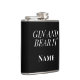 This stylish hip flask features the playful phrase “Gin and Bear It” in a clean, modern typography layout, finished with a personalised name for an extra thoughtful touch. Designed to suit the sleek finish of the flask, the high-contrast text keeps the design bold, readable and gift-ready.