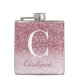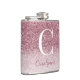 Rosa Girly Oro Esparkle Ombre Purpurina Monograma Hip Flask con falso purpurina y su nombre y monograma personalizado.