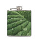 En este matraz botánico de fotografía de arte fino se muestra un cierre de una hoja de hosta verde. Las venas crean un patrón abstracto de espiral circular. La lluvia reciente ha depositado gotitas de agua y las gotas de lluvia reflejan la luz. Esta planta también es conocida como funkia, lirio de plátano o giboshi (en Japón). Una gran idea para los jardineros o para los amantes de la naturaleza.