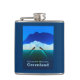 Ballenas con lanzas. Dos hombres narran "colofón", cruzando sus colmillos, con hielo marino y el continente de Groenlandia en el fondo. También aparece el texto "Groenlandia" y "Kalaallit Nunaat" (Groenlandia en groenlandés). Se desconoce el propósito del colmillo, una actividad común durante las partes más cálidas del año. Puede ser un saludo amistoso o una forma de eliminar piojos que infesten la base del colmillo. Ni siquiera se conoce con certeza el propósito final del colmillo en espiral. Puede servir para atraer a un compañero con el mismo propósito que las cuerdas de ciervo y alce, las plumas de cola del pavo real, o un macho de león. Algunos investigadores creen que puede servir como órgano sensorial. Tal vez sirva a más de un propósito.