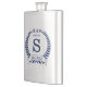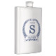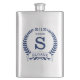 Este matraz metalizado de 8 onzas es perfecto para el novio. Es tradicional y moderno con una corona azul laurel y una pancarta con la fecha boda, título/trabajo y primer nombre inicial y primer nombre todo en azul. Serían geniales para una fiesta de solteros o un fin de semana. Consigue uno para todos en la fiesta nupcial - ¡los amarán! El título se puede cambiar fácilmente por el de mejor hombre, groomsman, usher, etc.