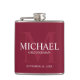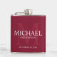 Añada un toque personal a su boda con un matraz de groomsmen personalizado. Este matraz presenta el nombre personalizado del groomsman con título y fecha boda en blanco y monograma en rojo burdeos claro como fondo, en estilo serif clásico, con fondo rojo burdeos. También perfecto para el mejor hombre, padre de la novia, portador de anillo y más.