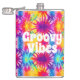 Diseño del matraz de cadera de Guay con un colorido fondo de tinte retro con personalizable hippie "groovy vibes" texto.
