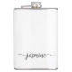 Frasco personalizado minimalista femenino simple con monograma en negro y blanco. Estos diseños presentan su primer nombre en una bonita tipografía de letra manuscrita con cola de floritura en negro sobre fondo blanco. Estos son fáciles de personalizar. Un regalo femenino y elegante para despedida de soltera, regalo de inauguración de casa, también para fiesta de despedida de soltera, cumpleaños, día de la madre, boda, fiesta de cumpleaños de 16 años, fiesta de desayuno de novia, para fiesta de graduación y es para la chica que ama cosas únicas y elegantes.