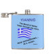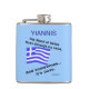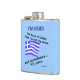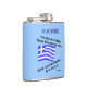 El matraz personalizado muestra una bandera griega ondeando y dice: "La sangre de Hellas fluye a través de mis venas. Y a veces... es ouzo". Diversión por una risa en el Día de Oxi o en cualquier momento. El color de fondo es azul. Se puede cambiar a lo que quieras. Gran regalo para papá o papá en el Día del Padre.