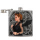Representación en 3D de una hermosa bruja de cuento de hadas sobre un mágico fondo de castillo antiguo