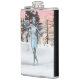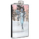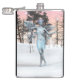 Representación digital en 3D de un hermoso hada de hielo en un fondo de bosque invernal