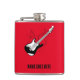 Matraz de cadera con guitarra y fondo rojo. Puede personalizar del nombre o agregar el texto que desee.