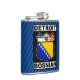 Detroit Bosnian American Flask. Escudo clásico de diseño de estilo de carretera, con el texto Detroit Bosnian y las banderas de la ciudad de Detroit y Bosnia y Herzegovina