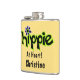 Muestre que es un hippie de corazón cuando asiste a fiestas u otros eventos con un matraz personalizado personalizado con su nombre. Revive esta era con esta palabra de arte caprichoso " hippie " en negro y delineado en verde lima brillante sobre un fondo amarillo que puedes cambiar. Las palabras de personalizable "en el corazón" están debajo de la palabra Hippie. Personalizar tu nombre en la parte inferior. La colorida y elegante palabra gráfica hippie tiene la primera en salpicada de una flor, delineada en morado lavanda en un estilo de los años 70. Celebra la actitud hippie y el estilo de vida y con diversión con un retroceso retro a finales de los 60 y principios de los 70 con estilo. Los colores son amarillo, negro, verde limón y púrpura lavanda. Personalizable total de hacerlo propio. El arte original es de Phyllis Dobbs.