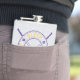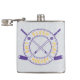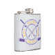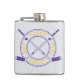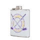 2 colores de diseño vintage en colores contrastantes dorado y violeta. Con palos de hockey cruzados y pollos de hockey, y el texto EAT SLEEP PLAY HOCKEY.