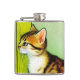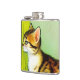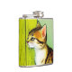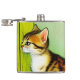 ¡Un matraz con un gatito en forma de tabby! Este tabú de bonito se encuentra junto a una cesta y flores. Un regalo perfecto para los amantes del gato y del arte victoriano.